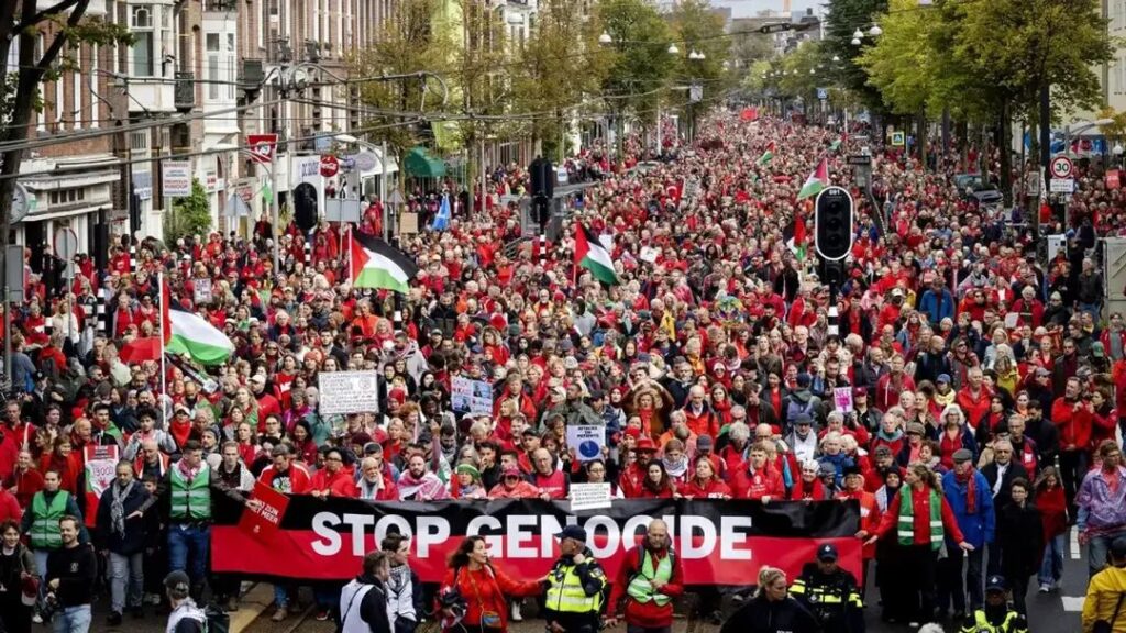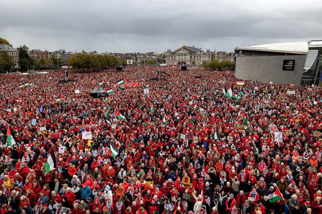250.000 kişinin bir anda sokağa dökülmesi, 1980’lerdeki nükleer silahlanma karşıtı gösterilerden bu yana Hollanda’nın gördüğü en büyük kitlesel eylem olarak tarihe geçti. Museumplein’den başlayan yürüyüş, Amsterdam’ın tarihi sokaklarında kilometrelerce uzanan bir insan zinciri oluşturdu.