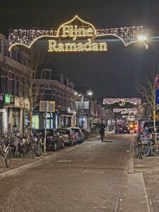Türk, Faslı ve Orta Doğulu girişimcilerin yoğun olarak faaliyet gösterdiği Kanaalstraat, bu yıl Ramazan ayı boyunca “Fijne Ramadan” mesajları, hilal figürleri ve kemerli dekoratif ışıklarla farklı bir atmosfere büründü. Aydınlatmalar, mahalledeki işletmelerin ortak kararıyla hayata geçirildi ve bölge sakinleri tarafından büyük ilgi gördü.
